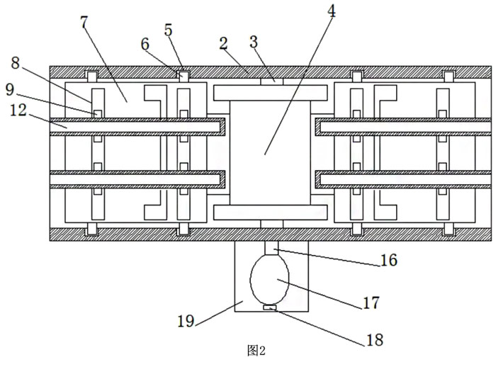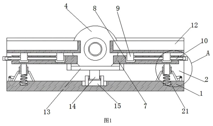 升降活動(dòng)槽5與升降滑塊6的數(shù)量均為四個(gè),且兩個(gè)升降活動(dòng)槽5與升降滑塊6為組,兩組升降活動(dòng)槽5與升降滑塊6分別分布在升降板7的頂面,使得定位滑軌12的移動(dòng)更為穩(wěn)定,不易卡住。
