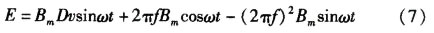 在正弦波勵磁方式下,假定勵磁電流為I=Imsinωt,其中ω=2πf,流量計的勵磁磁場強度B和勵磁電流相位相同,所以得到公式為B= Bmsinωt。將此公式帶入式(3)和式(4)可得