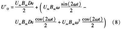 由式(8)可以看出信號經過信號處理之后得到U'0,交流部分[UmBmω*sin(2ωt)/2]-[UmBmDv*cos(2ωt)]+[UmBm ω ² cos(2ωt)/2]可經過低通濾波器濾除,直流部分UmBm Dv/2經過放大后直接輸人MCU進行處理轉換成流量信號顯示出來。