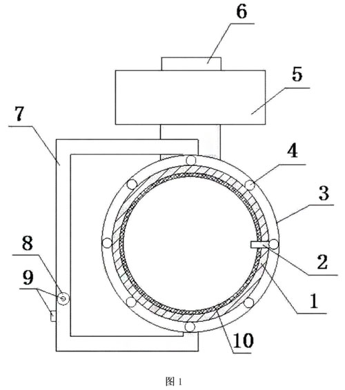 圖中:1、測量導管:2、信號電極:3、保護外殼:4、勵磁線圈:5、信號轉換器;6、智能處理器;7、導管;8、浮子;9、高度測量器;10、絕緣襯里。