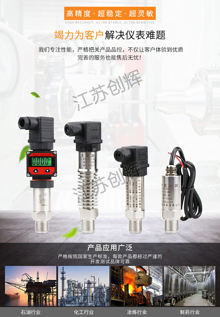 精巧型壓力變送器,采用金屬擴(kuò)散硅傳感器,金屬的延展性、精度及各方面的綜合指標(biāo)是很多其他類型傳感器無可比擬的。傳感器選用美國(guó)GE集團(tuán)NOVA公司進(jìn)口壓力傳感器或者M(jìn)ICROSENSOR公司合資壓力傳感器,產(chǎn)品由高精度傳感器和高集成化電子線路及不銹鋼外殼組成。**應(yīng)用于空調(diào)設(shè)備、恒壓供水、自動(dòng)化控制、空壓機(jī)、制冷設(shè)備、水處理系統(tǒng)、液壓系統(tǒng)、工程機(jī)械、發(fā)酵罐過程檢測(cè)等。